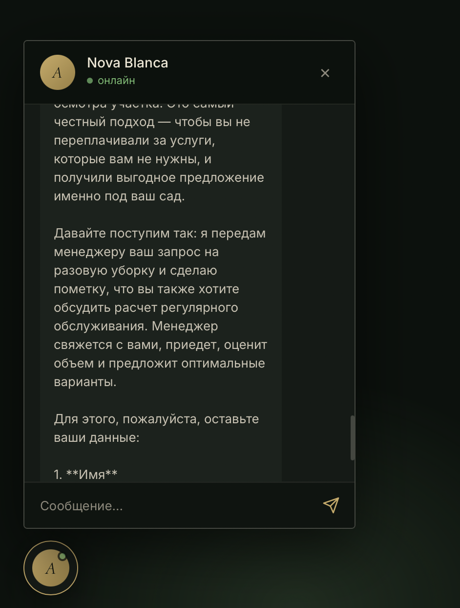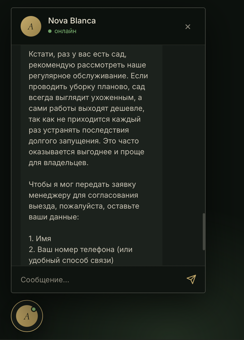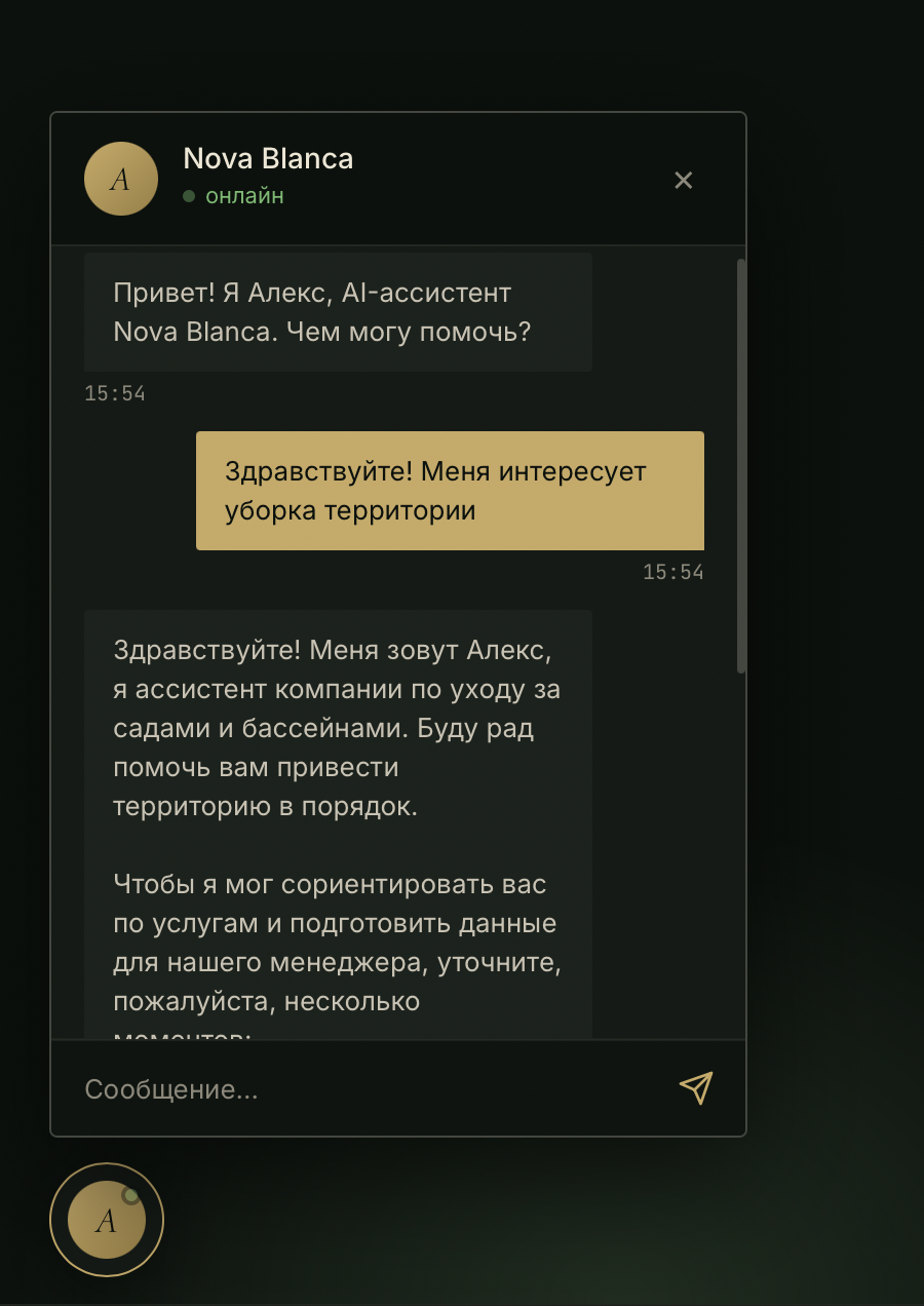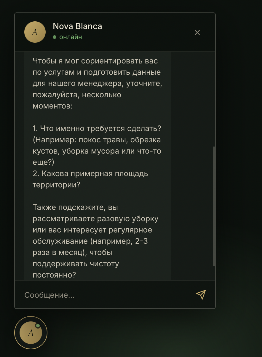 Nova Blanca: лендинг с AI-ассистентом и автоматическим сбором заявок